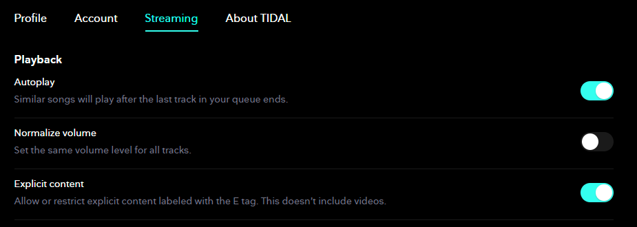 Nomalize volume은 음원 간의 볼륨 차를 타이달에서 일정한 볼륨으로 조정해 주는 기능입니다.