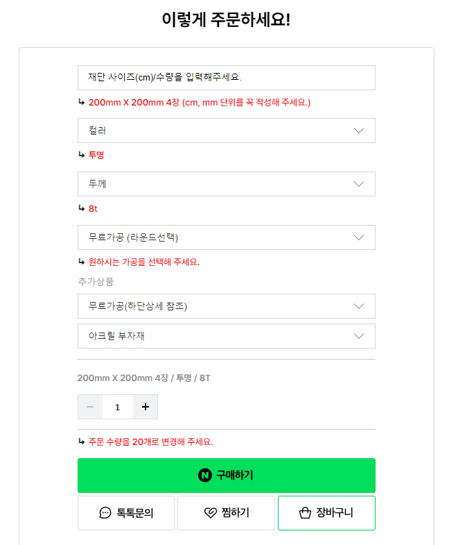 치수와 두께에 따라 가격이 변동되니 꼭 확인하시고요.