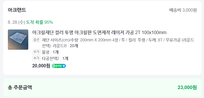 아크릴은 네이버의 아크랜드에서, 다보는 다보코리아에서 따로 주문했습니다.