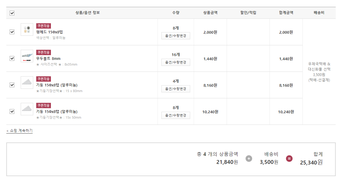 견적 내는 란에 넣고 주문 수량을 변경해서 금액을 결제하는 방법입니다.