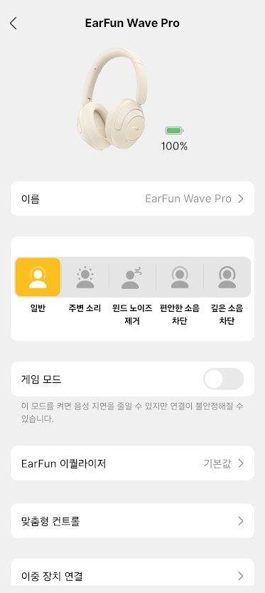 어플을 통해 각 전원버튼부터 볼륨버튼, NC버튼의 조작을 자신의 취향에 따라 조작이 가능합니다.