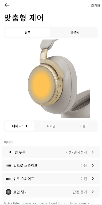 여전히 볼륨과 ANC를 다이얼 회전으로 조절할 수 있는데, 이는 다른 브랜드와 비교해 뱅앤올룹슨만의 차별화된 편의성을 제공합니다.